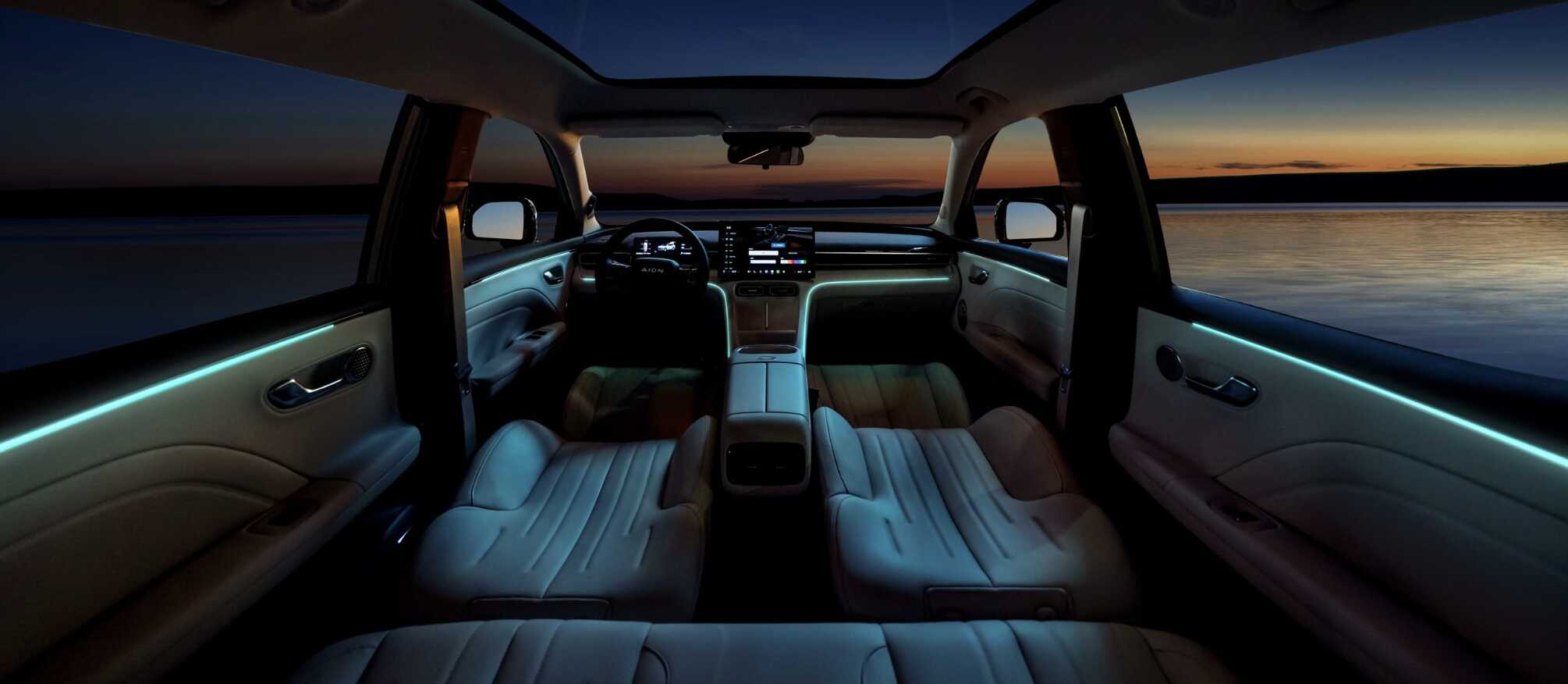 舒适性配置方面,车内前排8点式按摩座椅支持通风、加热、电调、记忆功能,后排座椅靠背角度可实现同级领先的137度放倒,还有后排小桌板,以及2.26平方米全景天幕加电动遮阳帘等多项舒适配置。埃安i60还提供同级首个车身投影仪打造“车外IMAX”,车内有麦/无麦 K歌功能,以及6kW V2L外放电功能。