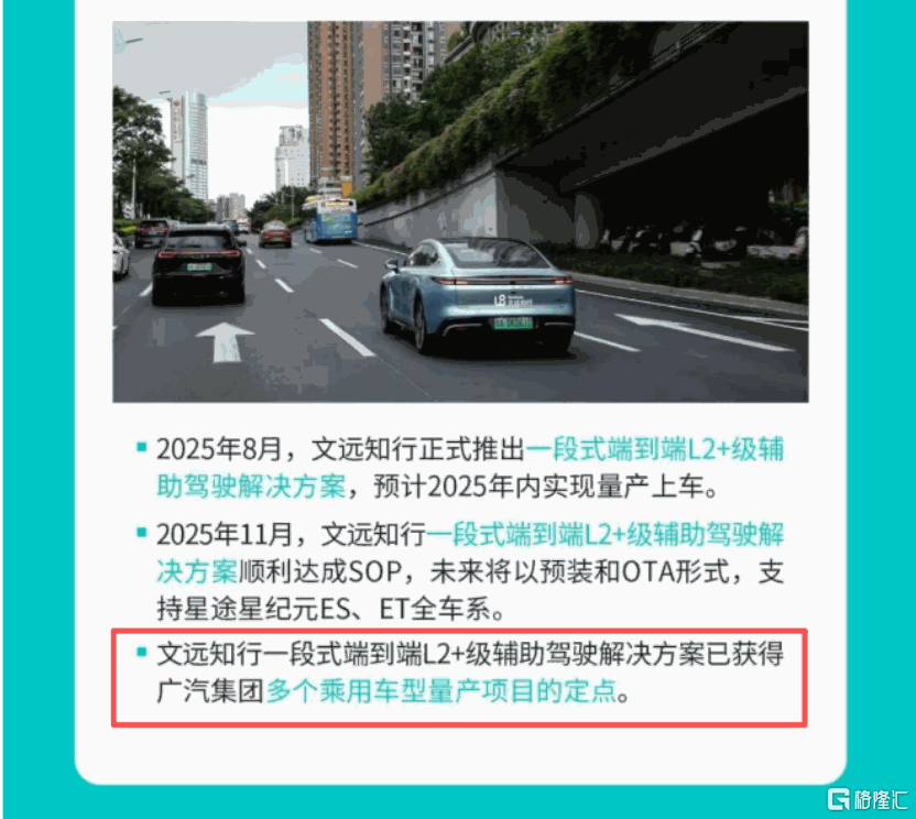 另一个潜在的增长趋势藏在文远知行财报长图的角落里。在技术突破这一部分,文远知行非常低调地官宣了“旗下一段式端到端L2+级辅助驾驶解决方案已获得广汽集团多个乘用车型量产项目的定点”。作为乘用车年销量数百万辆的中国一线OEM,文远知行能够拿下“多个”乘用车型的L2量产定点,不仅证明了其一段式端到端技术在OEM侧的价值链,更为未来营收的进一步扩大预埋了增长原点。