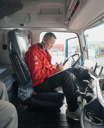 下午的试乘试驾环节,杨林亲身体验了全新一代东风天龙KH牵引车。这款车在研发过程中走访了全国30多个城市,深度采纳了天龙哥们的建议。杨林笑着说:“这款车在很多细节上都进行了调整,只有真正用车的人能体会到。”