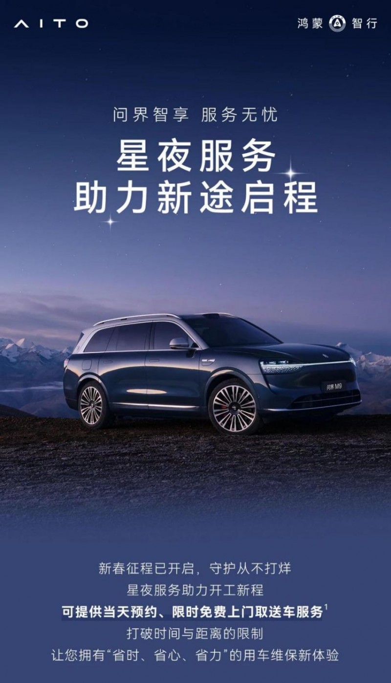 赛力斯集团董事长(创始人)张兴海多次强调:“既要服务好车,更要服务好人。”秉持这一理念,问界推出“星夜服务”,将全国超百家用户服务中心的营业时间延长至21点,全面覆盖基础保养、补胎及简易钣喷等高频用车需求,真正实现“服务等用户”,让用户不再为保养时间而烦恼。