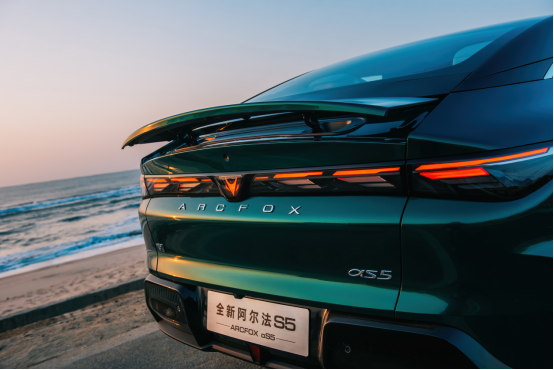 前脸造型紧致利落,外置式主动进气格栅,搭配近400颗LED日行灯和360°驾驶辅助小蓝灯,极具辨识度。“小蓝灯”一亮,出街自然嗨,为此,全新阿尔法S5被网友亲切称为“蓝眼狐”,兼具智慧与美丽,出场即焦点。车身方面,全新阿尔法S5更是呈现了“尺寸大一圈,气场强十分”的即视感,车长增加66mm后达到4886mm,轴距2900mm接近C级,整车姿态更显低趴,百万级豪车同款大溜背设计与流畅的车身线条,既强化纯粹轿跑造型,又以0.1925Cd超低风阻,尽显运动格调。不仅如此,全新阿尔法S5的无边框车门、亮色卡钳、高亮轮眉与3430cm²同级最大智能升降尾翼,每一处细节都在释放动感气息。