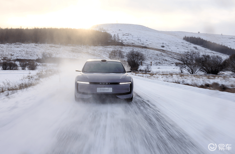 奥迪 E5 Sportback(旗舰quattro型)搭载前后永磁同步双电机,能够爆发出最大579 千瓦(787马力)和800牛·米的峰值扭矩,仅需3.4秒即可完成0-100km/h加速。冰雪之上,电驱系统瞬时、线性的扭矩输出特性,为精准控车提供了全新维度的可能。