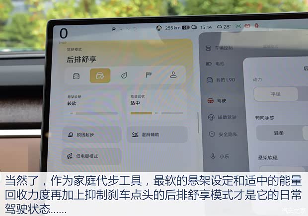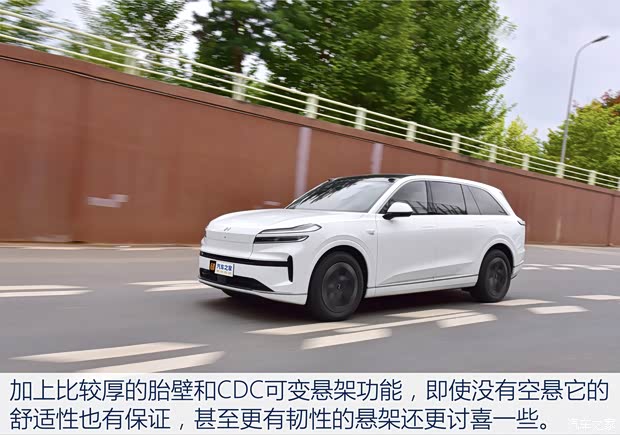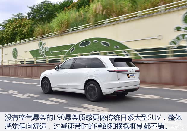 接下来说说大家最关心的问题之一:不带空悬的L90底盘感觉究竟如何?其实大家完全可以放心,没有空悬的L90的整体的底盘质感偏向舒适,滤振、支撑表现都比较适中。虽然没有了空悬的舒适模式下的那种悬浮感,但悬架质感反而更像传统的大型SUV,尤其是日系的大型SUV的感觉。经过大的起伏时悬架处理也比较干脆,没有太多次的来回拉扯,过减速带时的弹跳和横摆抑制都不错。这种偏向传统大型SUV的底盘风格反而更能吸引经过“旧时代”洗礼的编辑,毕竟经常接载家人,后排坐着舒服就行。