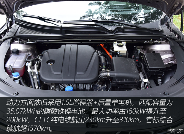 在续航方面,增程版车型搭载1.5L增程器+后置电动机统,发动机最大功率72kW,最大扭矩125N·m,电动机最大功率200kW,最大扭矩290N·m,配备35.07kWh的磷酸铁锂电池组,CLTC工况下纯电续航里程为310公里,WLTC为225公里,表现究竟如何?我们直接开测!
