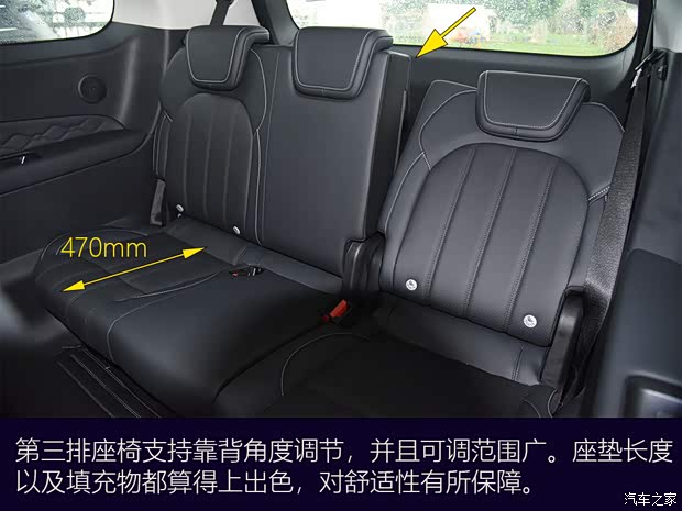 第三排座椅不仅没有小板凳的感觉,甚至填充物和座垫长度都非常出色,舒适性一样有保障。那么如果是身材没那么高大的司机和乘客,即使车内坐满7个人也不会太过拥挤,短途行程绝对没有问题。