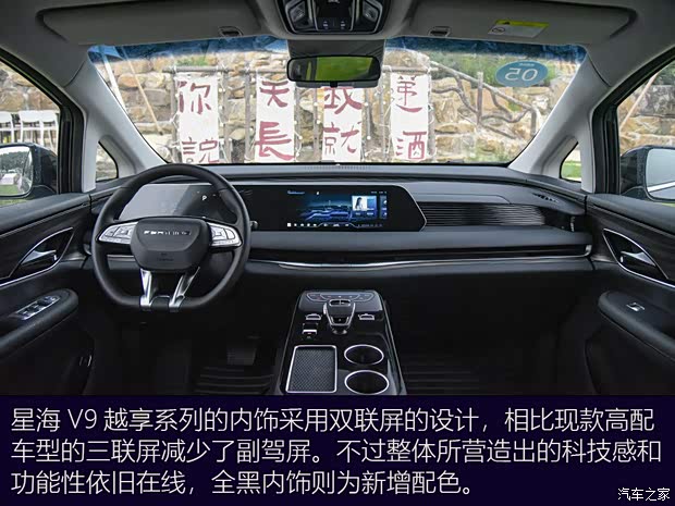 2第三排空间出乎意料进入车内,最吸睛的就是双联屏,相比于大部分传统燃油MPV而言,这个内饰设计确实科技感更足,而且更丰富的智能座舱体验也是它相比传统车型的优势所在。不过相比现款的高配车型,越享系列并没有副驾屏,液晶仪表和中控屏尺寸均为12.3英寸。