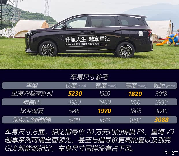 星海V9越享系列在8月11日正式开启预售,预售价为19.99万元起。由于新能源市场的竞争非常激烈,卷配置、卷价格,而目前市场中的插混MPV售价基本都要到30万元左右,20万以内确实对手并不多,当然这也是星海V9越享系列为了要杀出重围取胜的关键,那么您认为它有没有吸引到您呢,最终在8月21日上市的售价区间是什么样的更合适?欢迎在评论区聊聊吧!(文/图/摄 汽车之家 孙嵩韬)