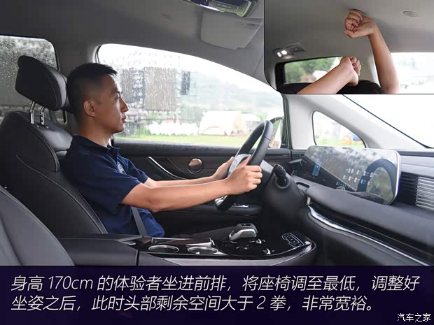 既然刚说了车身尺寸表现不俗,那自然对车内乘坐空间也有着很高的期待。实际体验下来,三排的头部空间都非常充裕,整体表现出色,而第三排的空间更是超乎预期。