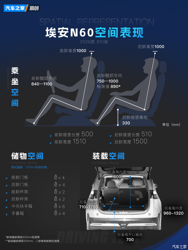本次试驾的车型为埃安N60 2026款 610版,CLTC续航里程为610km,采用单电机前轮驱动,电动机最大功率为224Ps。官方表示,埃安N60是首款采用非晶合金碳化硅电驱的车型,平均电耗为11.7kWh/100km。至于它的实际续航表现如何,还要等后续测试后才能下结论。