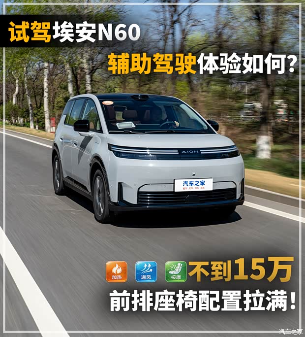 15万以内什么样的车最受欢迎?翻看近半年的销量榜不难发现,经济实惠、空间够大、配置够高,始终是消费者绕不开的关键词。今天我们体验的这台埃安N60,售价不到15万,配备了一个硬件规格较为全面的高阶辅助驾驶,前排座椅还给到了加热、通风、按摩,甚至连副驾零重力座椅也没有缺席。那么,这台车开起来到底怎么样?乘坐体验和空间表现能不能达到预期?再加上和文远知行合作的这套辅助驾驶系统,实际表现又能不能让人满意?