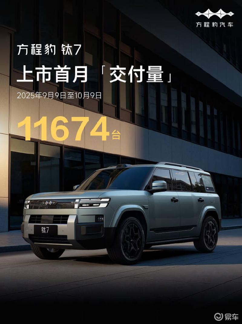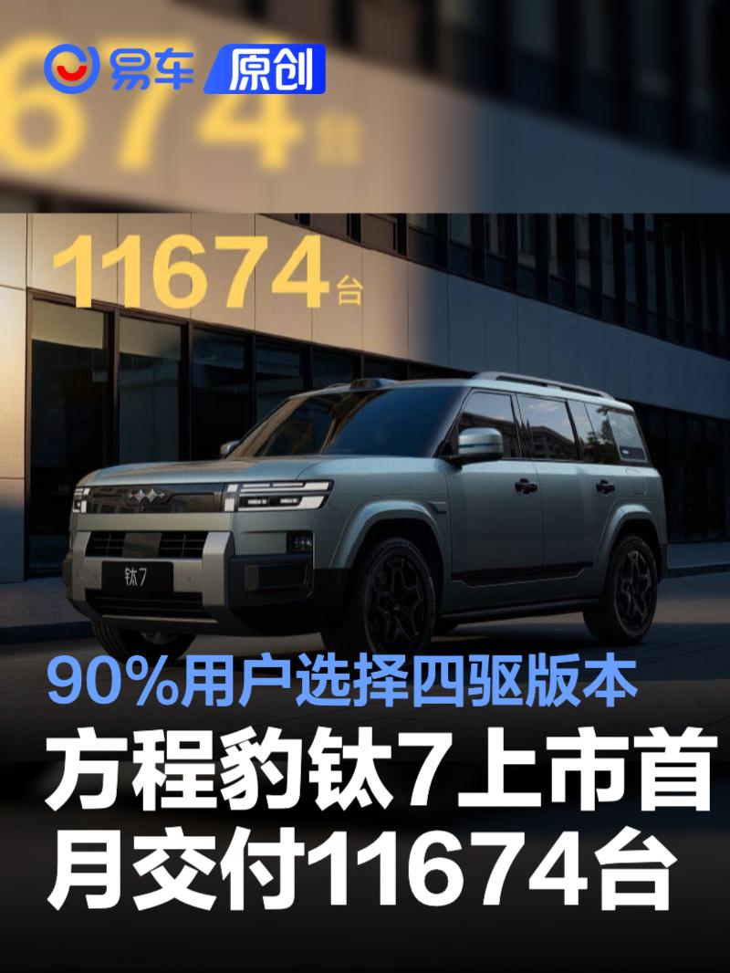 易车讯 10月11日,方程豹汽车宣布,方程豹上市首月交付11674台,其中90%的用户选择四驱版本,而在颜色方面,曜石黑则最受用户青睐。