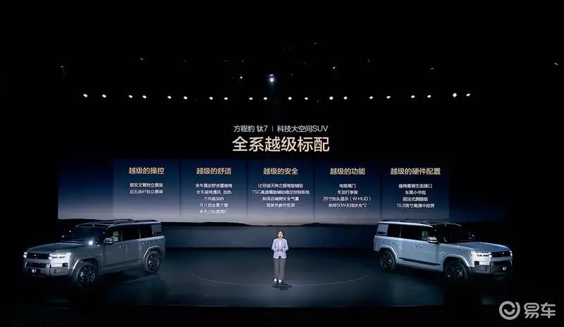 外观方面,新车整体延续了方程豹钛系列的设计语言,前脸方正的造型配合粗壮的保险杠,透着浓浓的硬派SUV气息。此外,新车车顶配备了激光雷达,预计在辅助驾驶上有着不错的表现。