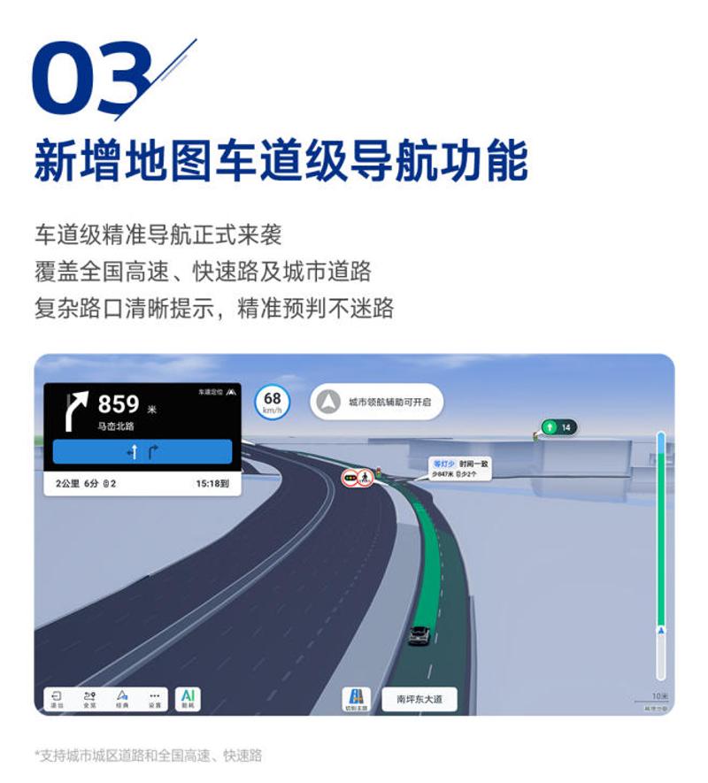 智能解闭锁功能也正式上车,系统可通过精准感知钥匙位置,实现靠近自动解锁、离车自动落锁,让用户彻底告别翻找钥匙或点手机APP的操作,进出车辆一气呵成。导航体验同样精益求精,新增地图车道级导航功能。车机从普通道路地图拓展到车道级地图的渲染显示,结合车端视觉精准定位,为用户在高速、城市场景提供沉浸的3D精准定位车道级导航指引。