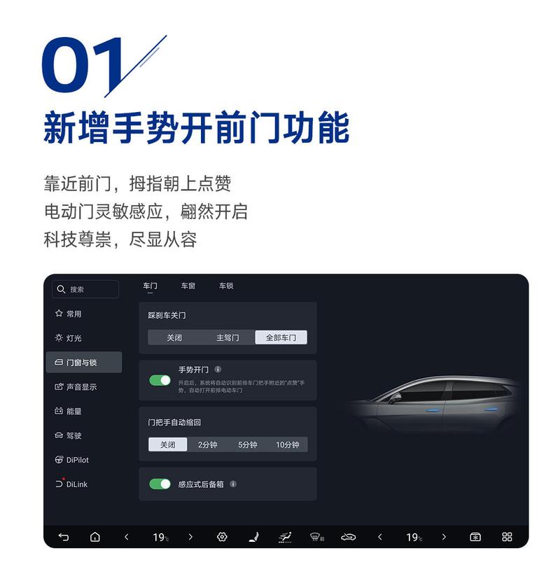 易车讯 10月11日,/Z9GT迎来OTA升级。本次升级针对智能座舱交互体验进行升级,新增手势开前门、全向行车记录、地图车道级导航、AR脚踩感应开启背门、智能解闭锁、生命守护系统、刷脸支付功能、智能智慧物联APP等多项功能,并优化电动门开关便利性、变更自动空气循环策略等数十项功能变更。