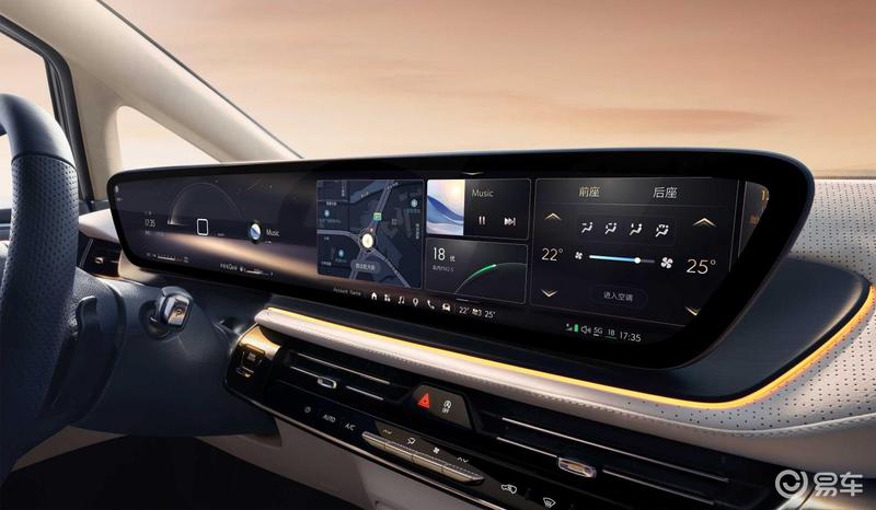 内饰方面,世纪CENTURY果岭版搭载EYEMAX 30吋一体弧面6K屏,座舱前排的扶手箱内置4.3L压缩机冰箱,后排配备15.6吋后舱智慧屏,内嵌的“沙发管家”应用还提供1000余种APP下载。新车还支持AI大模型语音助手。