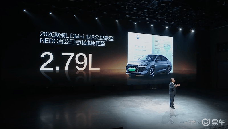易车讯 10月23日,2026款比亚迪秦L DM-i正式上市,售价9.68-10.68万元,同时11月30日前完成购车开票可享限时无门槛超级置换补贴4000元,补贴后售价9.28-10.28万元。新车在外观设计方面延续现款造型,新增未央灰车色和怀挡配置,纯电续航里程升至128km,百公里油耗低至2.79L。