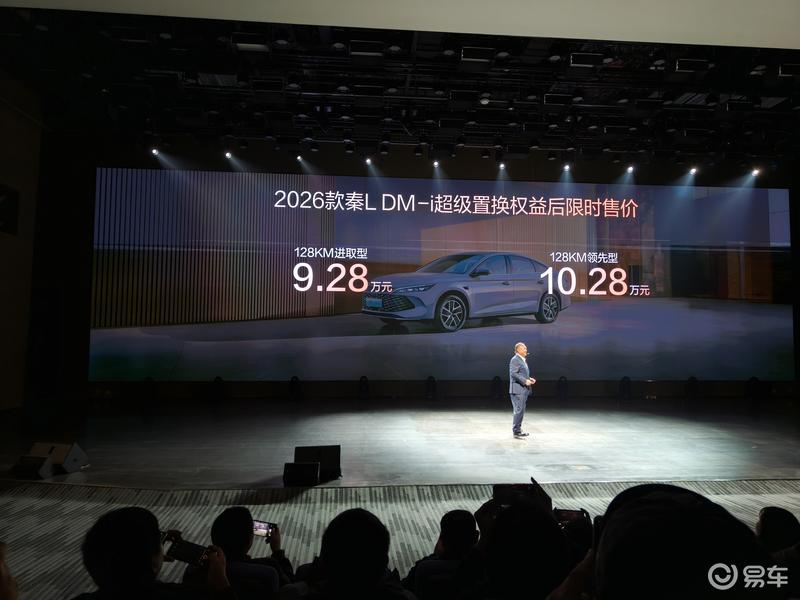 2026款比亚迪秦L DM-i 上市指导价 车型 售价 限时置换价 128KM进取型 9.68万元 9.28万元 128KM领先型 10.68万元 10.28万元