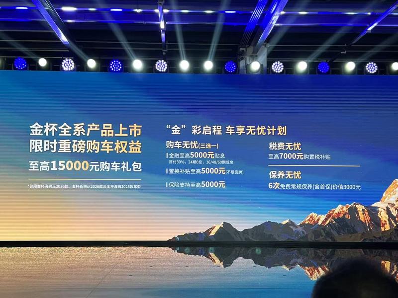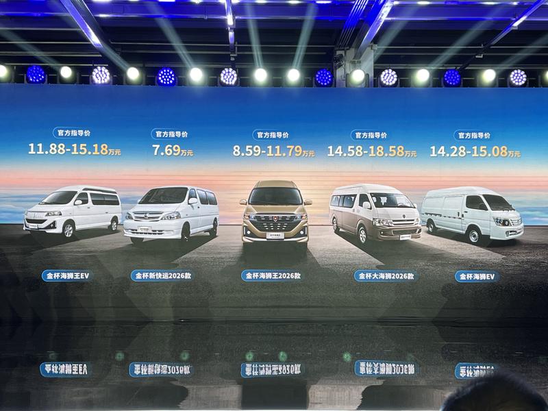易车讯 10月28日,金杯汽车全系产品迎来全新上市,其中2026款售价8.59-11.79万元,2026款售价7.69万元,2026款售价14.58-18.58万元,金杯售价14.28-15.08万元,金杯海狮王EV售价11.88-15.18万元。