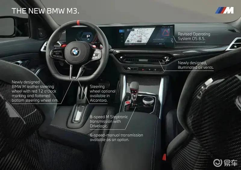 内饰方面,新车采用了全新设计的多功能方向盘,同时配备搭载iDrive 8.5车机系统的曲面双联屏设计,而电子换挡机构保留了经典的鸡腿档把,保留了M车型的运动属性。