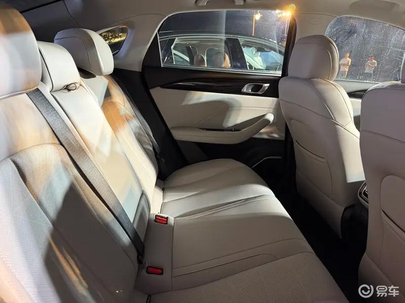 车身侧面,新车拥有0.6的黄金轴长比,体态优雅流畅, 曲面流畅圆润, 还富有张力的肌肉感。细节上,新车配备了无边框车门和无边框后视镜,并配备隐藏式水切设计,尽显高级。