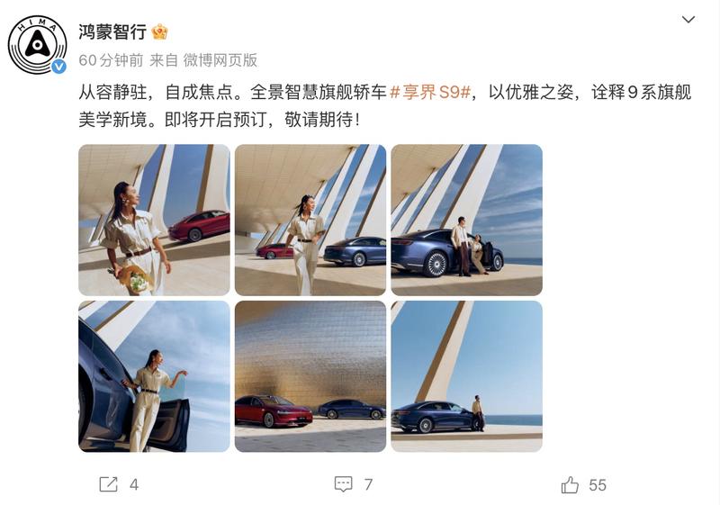 易车讯 11月3日,鸿蒙智行发布了新款车型更多官图,并宣布新车即将开启预订。华为常务董事、终端BG董事长余承东此前曾在社交媒体上宣布,新款享界S9将于11月正式上市。