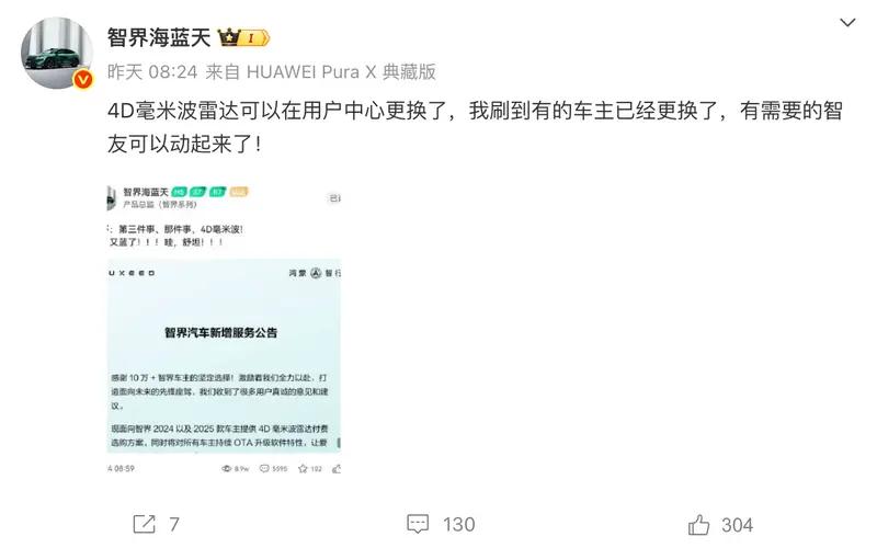 此外,智界汽车还在近期推出针对老车主的4D毫米波雷达付费选装服务,开放对象为2024及2025款符合条件的车型用户。