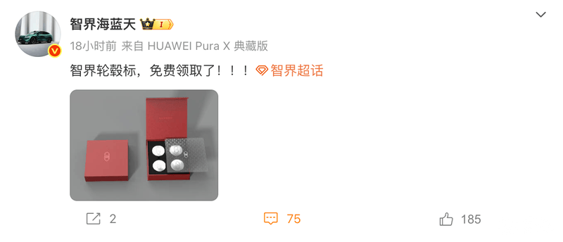 易车讯 11月3日,鸿蒙智行智界产品总监宣布,智界汽车将推出轮毂车标免费申领活动。不过目前具体申领规则尚未公布,预计将通过鸿蒙智行用户中心进行发放。
