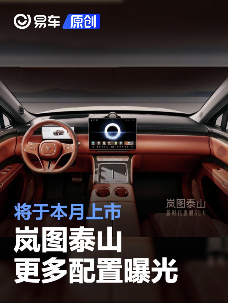 易车讯 日前,岚图汽车公布了旗下旗舰SUV岚图泰山的更多配置信息。新车将搭载最新版鸿蒙座舱语音大模型、超感AI云舒零重力座椅等配置。据悉,新车将在本月迎来正式上市。