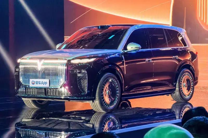 侧面来看,新车拥有修长流畅的车身线条,采用22寸超大电镀带悬浮徽标轮毂。车身尺寸方面,新车长宽高为5230/2025/1817(mm),轴距为3120mm,定位一款全尺寸SUV。