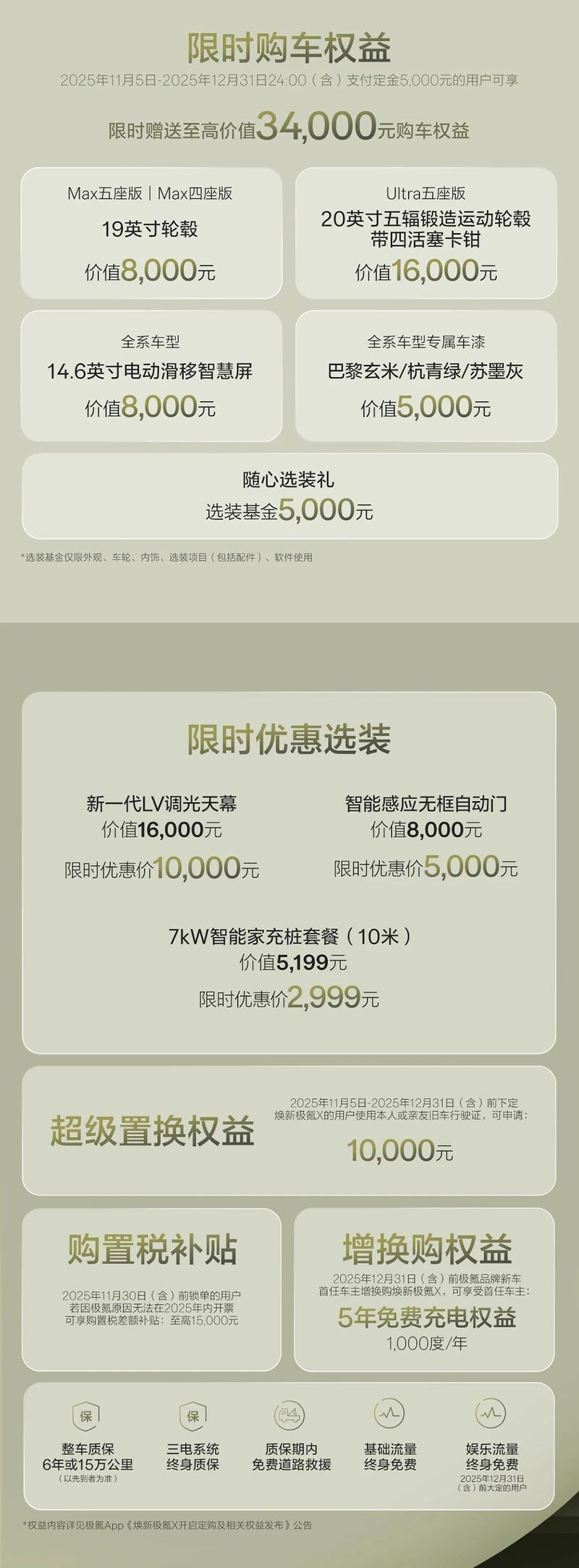 极氪X 车型 官方指导价(万元) 超级置换权益后限时售价(万元) Max五座版 15.58 14.58 Max四座版 15.98 14.98 Ultra五座版 17.58 16.58