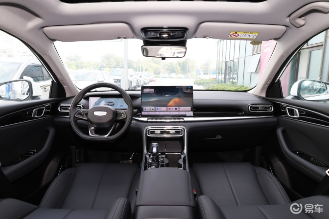 外观方面,新车前脸采用12根纵向直瀑立柱,设计灵感源自“十二时辰”“十二月份”等传统满数意象,既蕴含“圆满周全”的美好寓意,更体现对驾乘者的全方位守护;配合线条凌厉、力量感十足的前保装饰,让车头整体既充满视觉张力,又兼具大气时尚的运动格调。同时,新车还采用了吉目远眺LED前大灯,其照明距离超170米,有效照明范围相当于2个标准足球场的长度,即使在夜间复杂路况下,也能为驾驶者拓展更广阔的视野。