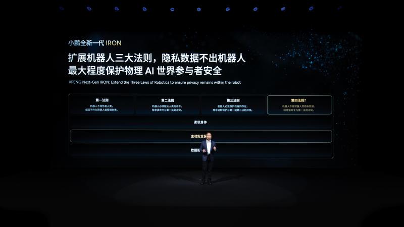 小鹏还推出机器人主动安全保护,最大程度保护物理AI世界参与者安全,并扩展第四法则,隐私数据不出机器人。目前,小鹏汽车已在广州建立首个具身智能数据工厂。
