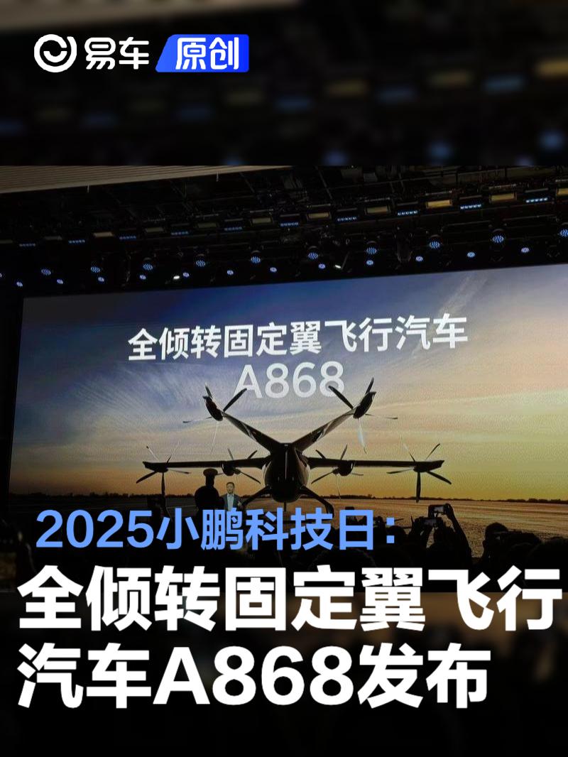 易车讯 11月5日,在2025 AI DAY小鹏科技日上,小鹏汽车发布全倾转固定翼飞行汽车A868,目前已经进入试飞阶段。
