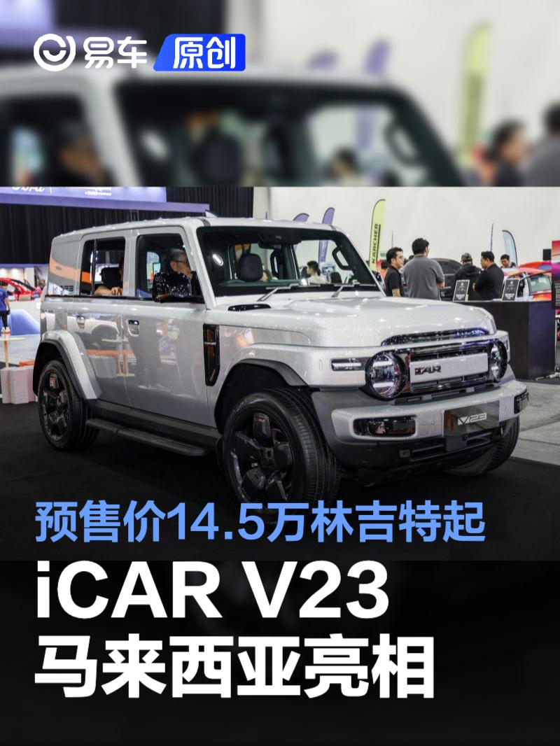 易车讯 日前据相关媒体报道,iCaur V23(国内为iCAR V23)纯电越野SUV在2025大马汽车展销会亮相,新车为右舵版本车型,预售价14.5-15.5万林吉特(约合人民币24.83-26.26万元),将在今年年尾正式在马来西亚上市。