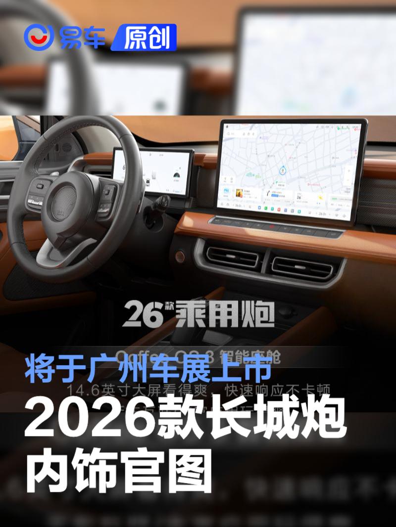 易车讯 11月17日,长城炮品牌CEO张昊保在社交媒体上公布了2026款乘用炮内饰官图,并宣布该车将于11月21日开幕的广州车展上正式上市。结合此前报道,2026款商用炮、2026款越野炮也将在本届广州车展上公布售价。