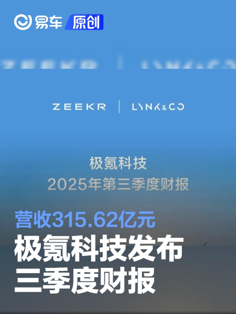 易车讯 11月17日,极氪科技发布第三季度财报。官方表示,总营收、整车营收同环比双增长,综合毛利率同比向好。2025年Q3总营收315.62亿元,同比增长9.1%,环比增长15.1%。