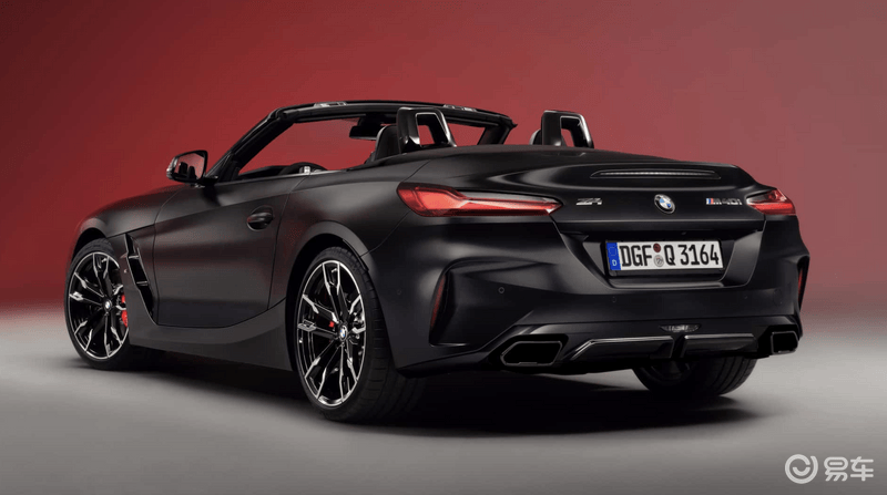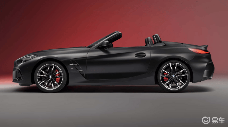 所有Z4最终版均标配宝马个性化定制磨砂黑金属漆及Shadowline暗夜套件。该套件将外后视镜壳、双肾格栅、下进气口及排气管尾嘴均采用亮黑色饰件点缀,同时搭配月光黑软顶敞篷和红色制动卡钳,辨识度拉满。