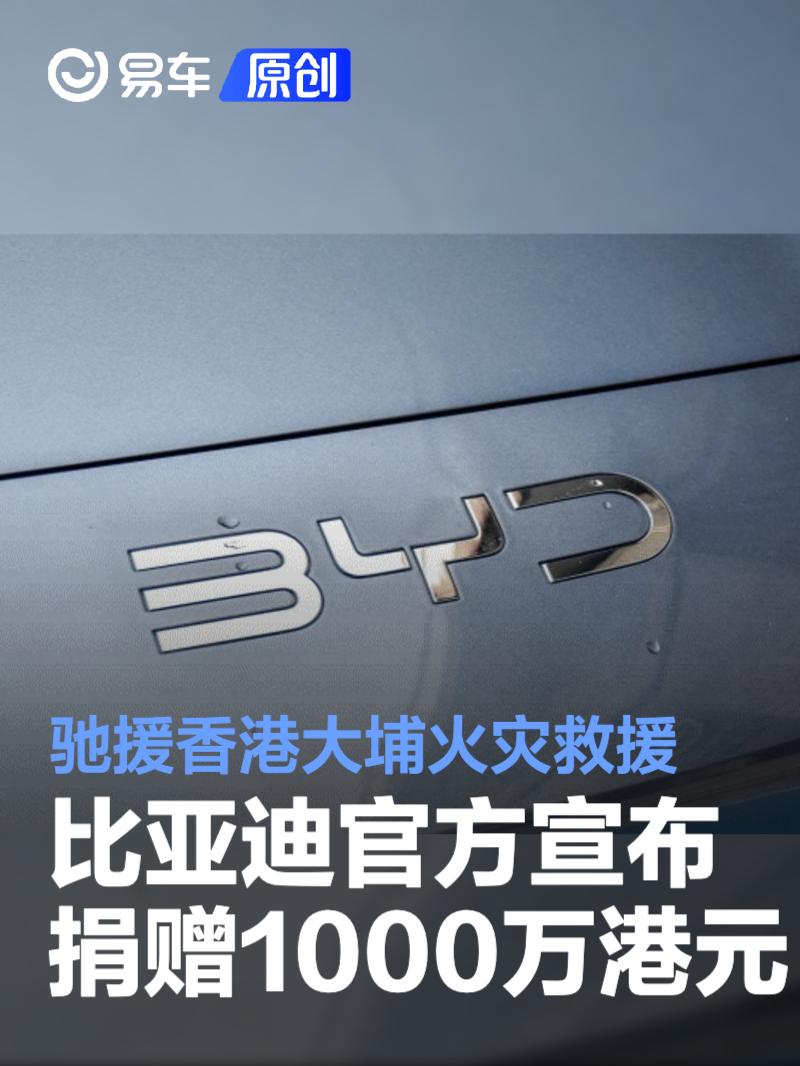 易车讯 11月27日,比亚迪官方宣布捐赠1000万港元,紧急驰援香港大埔火灾救援。官方表示,香港新界大埔屋邨宏福苑多栋住宅楼发生火灾,造成重大损失,牵动着社会各界的心。