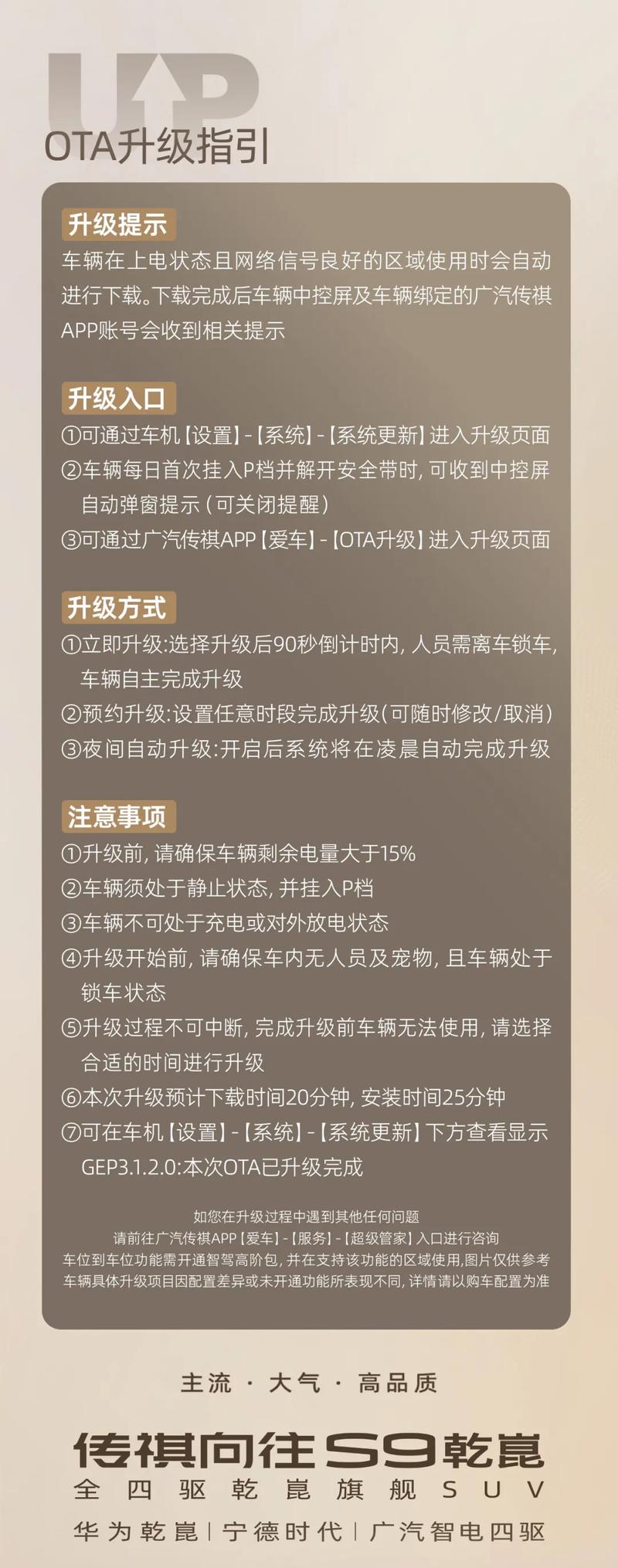 易车讯 近日,我们从广汽传祺官方获悉,乾崑迎来OTA升级,智驾全面进化;泊车轻松且智能;新增多种贴心提示;交互界面也迎来升级优化。