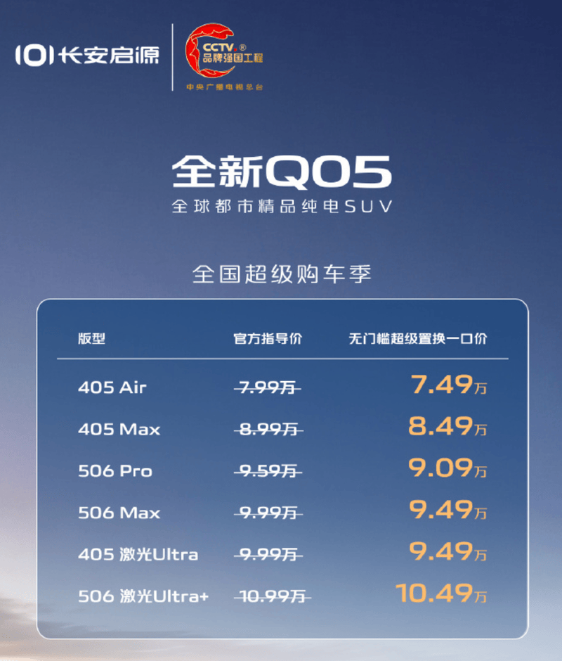 易车讯 11月29日,我们从官方渠道获悉,长安启源全新Q05全国超级购车季开启,即刻下订享无门槛超级置换补贴5000元,新车无门槛超级置换一口价7.49-10.49万元。
