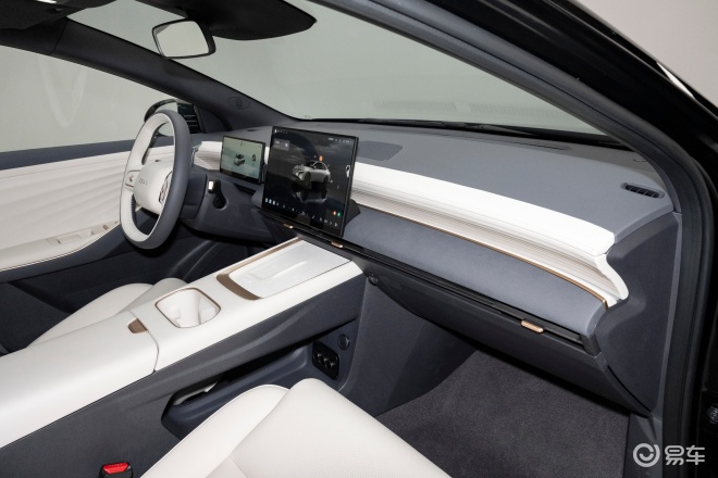 内饰方面,新车内饰采用360度环抱式样座舱,配备悬浮式中控屏和液晶仪表,256色光瀑式氛围灯,还提供手机支架扩展口等。新车提供深浅两种配色方案,并应用了怀挡式换挡机构,浅色内饰的方向盘为双色皮质材料包覆。