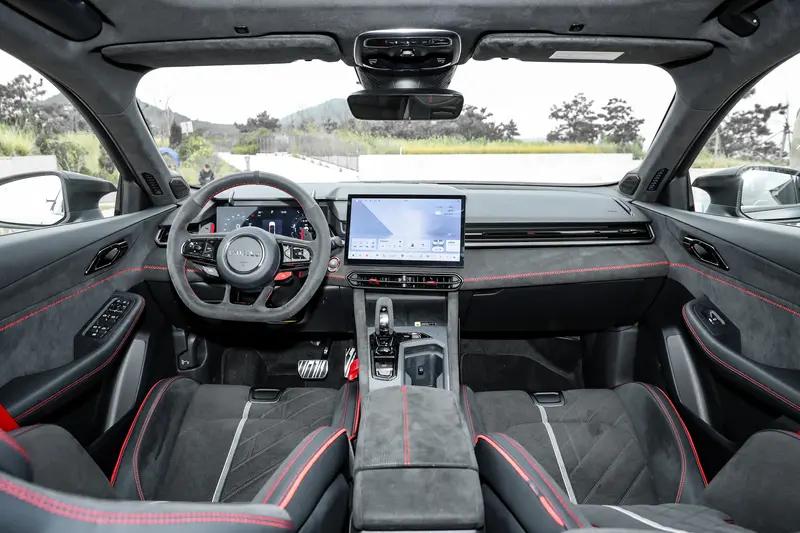 领克03+与领克03内饰的不同之处主要在于03+加入了更多麂皮包裹以及赛车风格的座椅,并将屏幕尺寸从15.4英寸调整为12.8英寸。