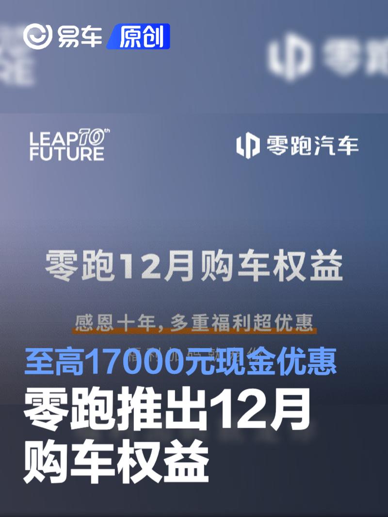 易车讯 日前,零跑推出12月购车权益,2025年11月27日至12月31日,包括Lafa5、A10、D19、B01、B10、全新C11、2026款C16、2026款C10、新T03、C01等10款车型,至高17000元现金优惠。