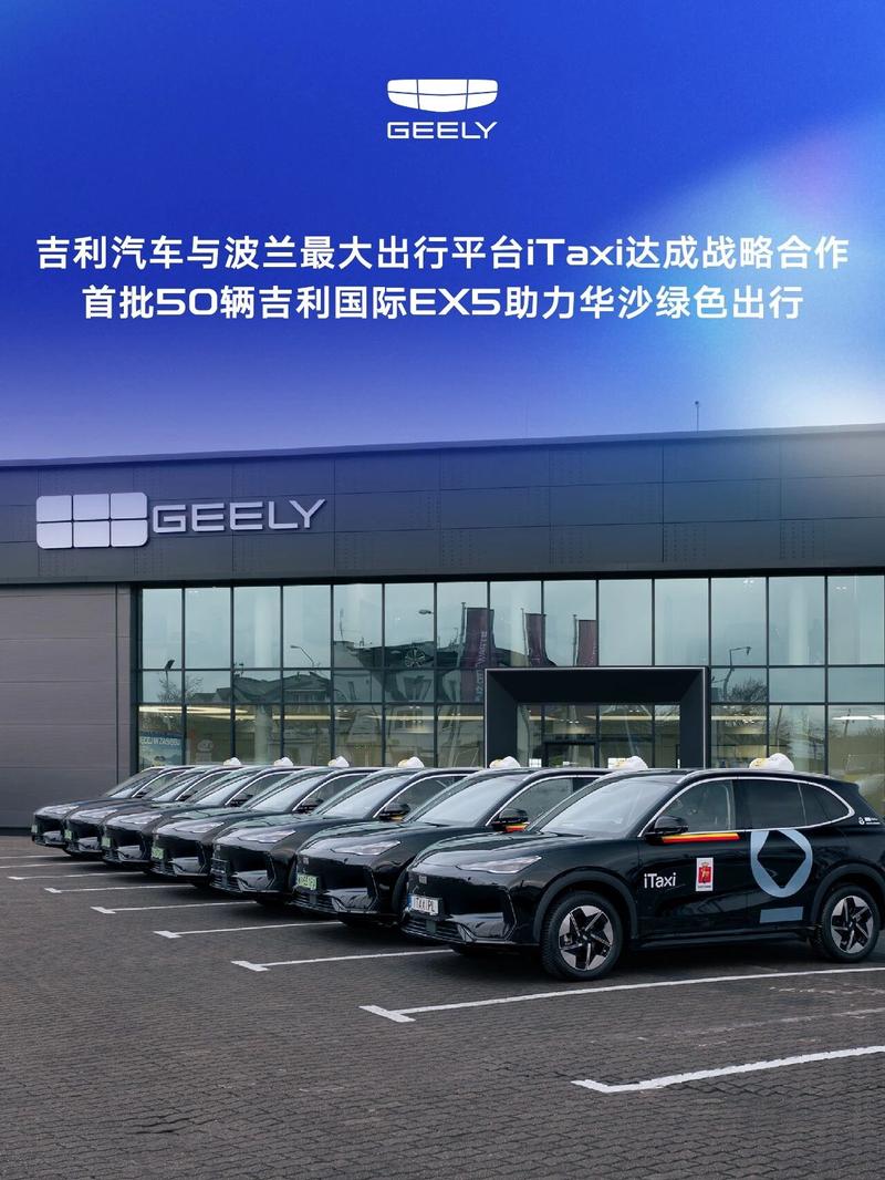 作为合作的第一步,50辆吉利国际EX5已正式交付,作为高端电动车型加入iTaxi在华沙的运营车队,为当地乘客提供现代化、可持续的出行服务。