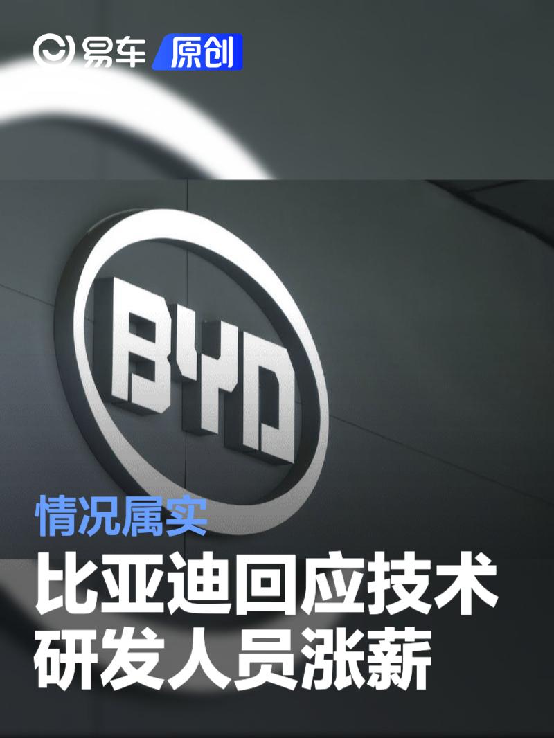 易车讯 日前,针对“比亚迪技术研发人员涨薪”传闻,比亚迪方面回应称,“情况属实”。但对于消息中“大部分涨薪500-1000元、少部分涨薪2000-3000元”等内容,比亚迪未作出表态。