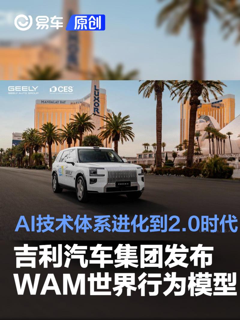 易车讯 在2026年国际消费电子展(CES 2026)上,吉利汽车集团宣布基于其首发的WAM世界行为模型,吉利全域AI技术体系顺利进化到了2.0时代,实现了AI技术在整车各域的跨域融合,让汽车智能首次拥有了持续进化的“世界观”和“判断力”。