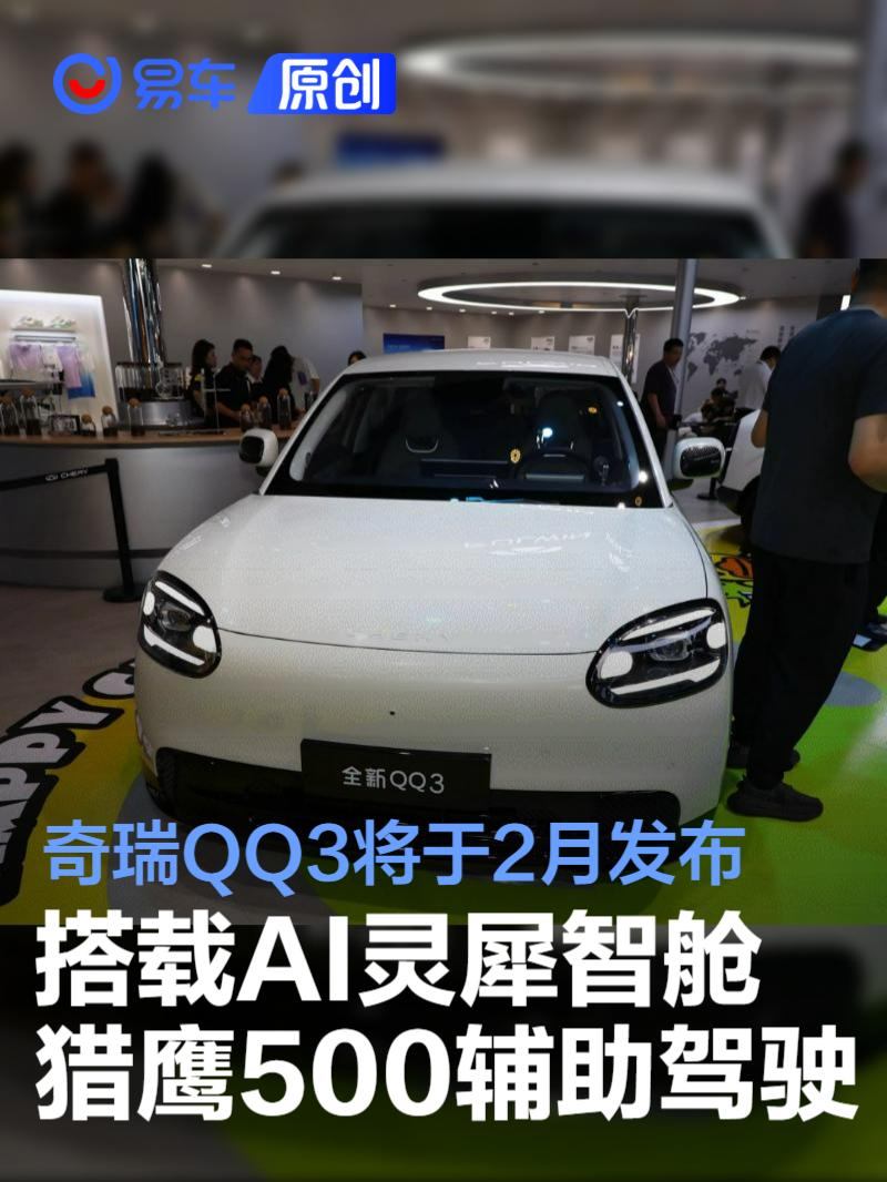 易车讯 1月17日,在2026奇瑞汽车AI之夜活动中,奇瑞汽车宣布QQ3将于2月正式发布。新车将搭载诸多AI智能技术,包含AI灵犀智舱以及猎鹰500辅助驾驶。
