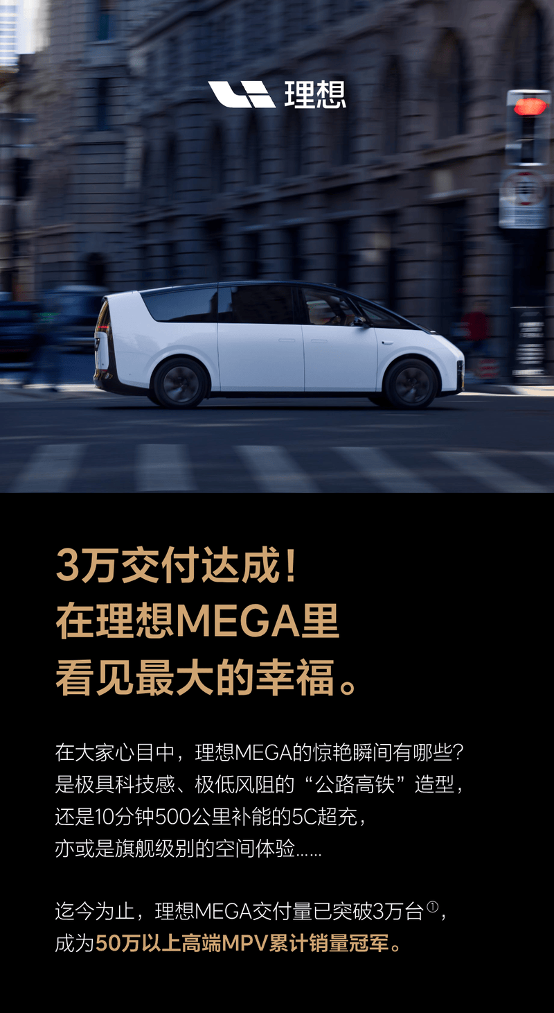 易车讯 1月26日,理想汽车官方宣布正式达成3万台交付,并登上50万以上高端MPV累计销量冠军宝座。新车共推出2款车型,售价52.98-55.98万元。