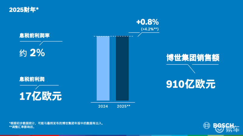 易车讯 日前,博世集团公布了2025年财务报告,其中,中国市场实现了1,498亿元人民币(约184.6亿欧元)的销售额,同比增长4.9%。