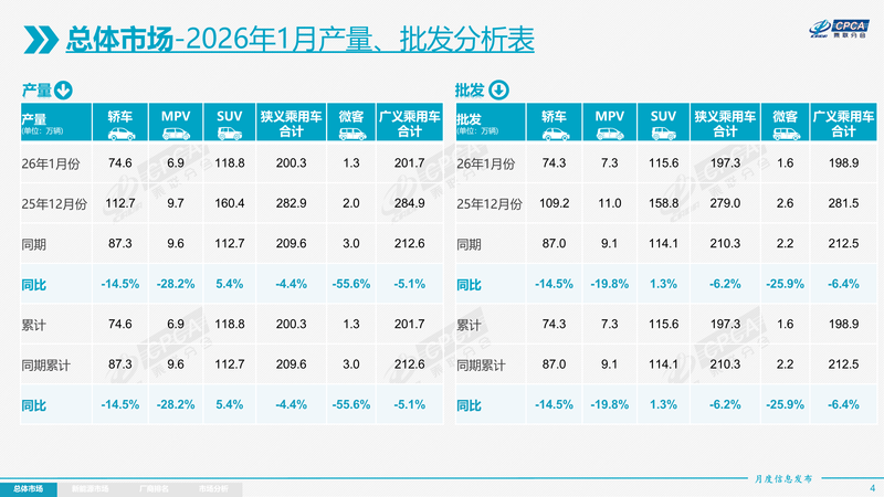 易车讯 2月12日,乘用车市场信息联席会(乘联会)公布了最新销量数据。2026年1月全国乘用车市场零售154.4万辆,同比下降13.9%。